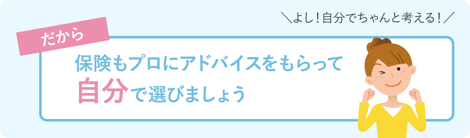保険もプロにアドバイスをもらって自分で選びましょう保険もプロにアドバイスをもらって自分で選びましょう