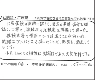 火災保険の契約に際して、当方の事情・条件を確認し、丁寧に、複数社の比較案を準備して頂いた。