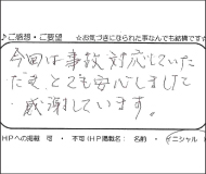 今回は事故対応していただき、とても安心しました。感謝しています。