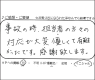 事故の時、担当者の方々の対応が大変優しくて有難かったです。
