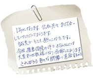 今回、損害保険の件で担当者さんには大変お世話になり感謝しております。
