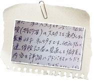 一家の大黒柱が突然、脳血管障害で倒れ生命保険(特約等)の大切さを痛感しました。現在、長男33才、私59才です。他社様の保険サービスも含め、早速、保険証券の見直しを依頼しました。サービス内容を詳細にアドバイスいただき今後は不安の少ない生活を送るために無駄のない、しかし最小限度は必要な内容で保障をいただける様になりました。貴重なアドバイスに感謝致します。