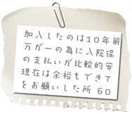 加入したのは10年前、家計に余裕がなく、万が一の為に入院保険だけでもと月々の支払いが比較的安い保険に。